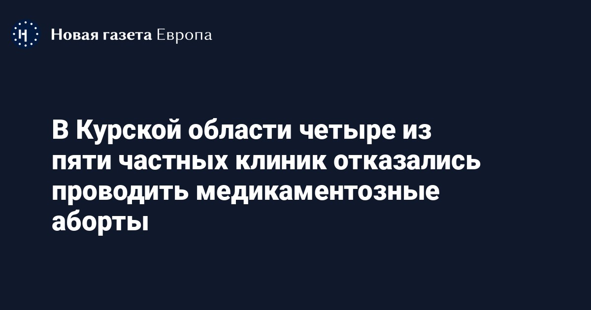 В Курской области четыре из пяти медучреждений, имеющих лицензию на проведение химических абортов, отказались от проведения этой процедуры. Об этом сообщает «Вести.Курск» со ссылкой на заместителя губернатора Курской области Андрея Белостоцкого.