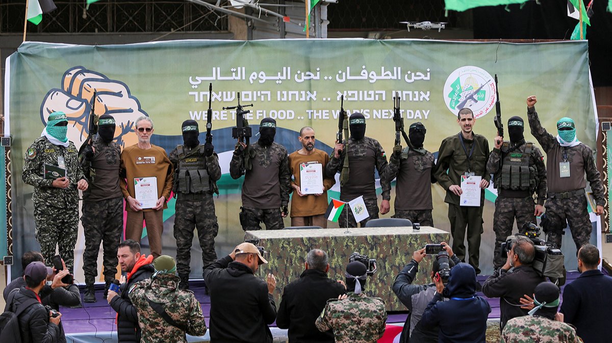 Это уже пятый раунд обмена в рамках первого этапа сделки с Израилем. ХАМАС вновь устроили «торжественную церемонию» освобождения заложников. В этот раз их заставляли говорить в микрофон со сцены.