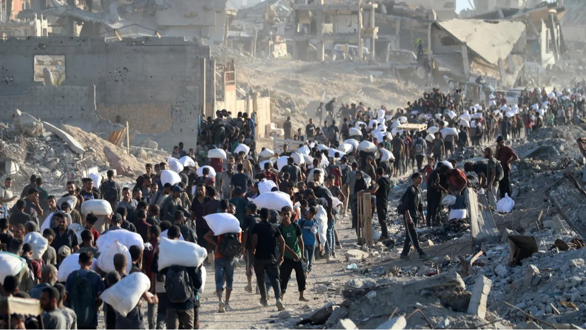 Жители Джебалии несут гуманитарные грузы, сектор Газа, 22 июня 2025 года. Фото: Majdi Fathi / NurPhoto / Shutterstock / Rex Features / Vida Press