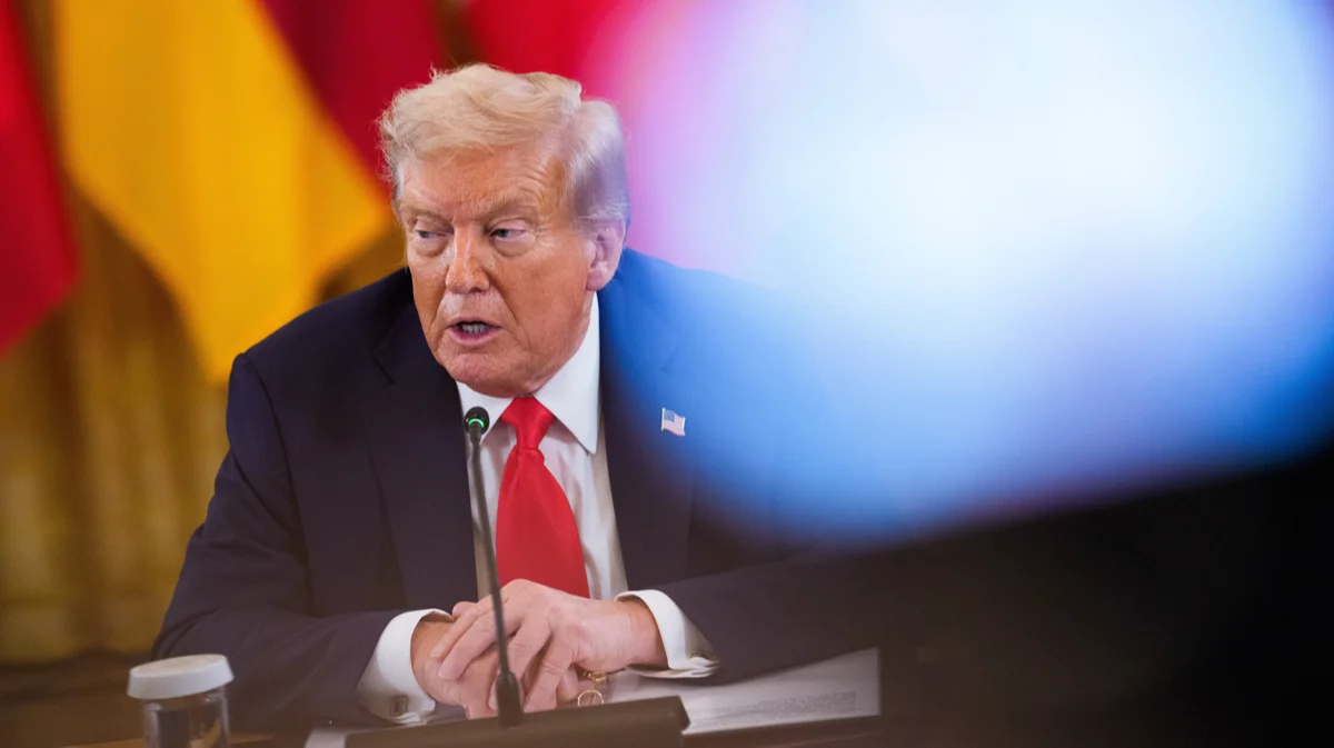 Дональд Трамп выступает с заявлением во время встречи с европейскими лидерами, Вашингтон, округ Колумбия, США, 18 августа 2025 года. Фото: Aaron Schwartz / EPA