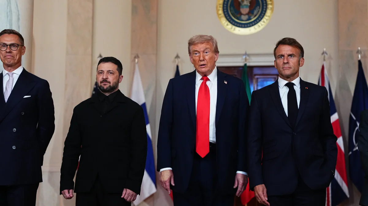 Президент Финляндии Александр Стубб, президент Украины Владимир Зеленский, Дональд Трамп и президент Франции Эммануэль Макрон во время многосторонней встречи с европейскими лидерами по вопросу Украины в Вашингтоне, округ Колумбия, США, 18 августа 2025 года. Фото: Aaron Schwartz / EPA