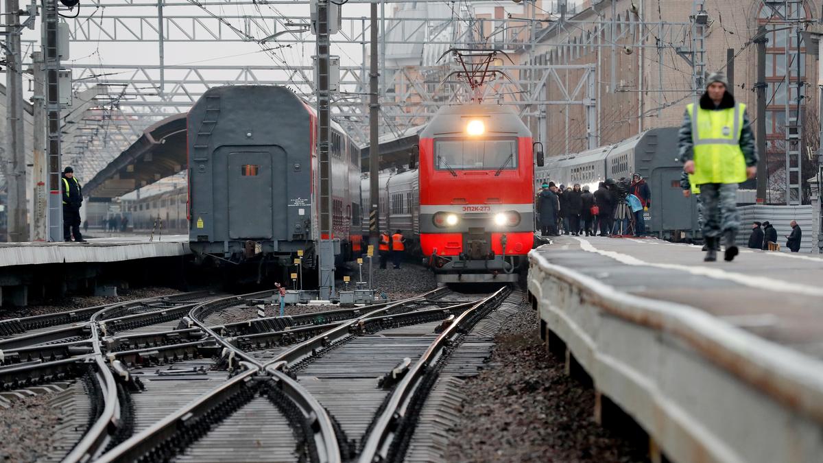 A long distance train leaving St. Petersburg’s Moscow Station. Photo: EPA / ANATOLY MALTSEV