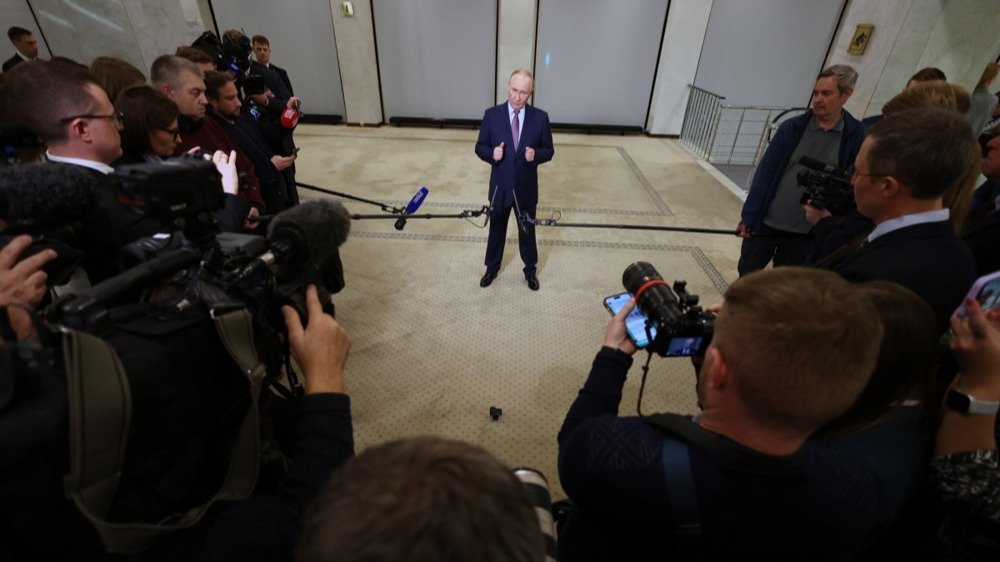 Vladimir Putin speaks to reporters on the sidelines of the Russian Geographical Society congress in Moscow, 23 October 2025. Photo: EPA/ Vyacheslav Prokofyev / Sputnik / Kremlin