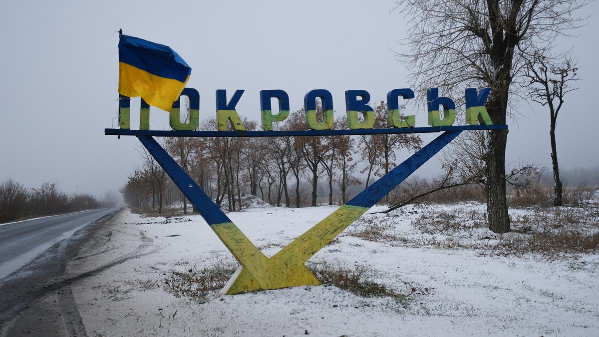 A sign at the entrance to the Donetsk region city of Pokrovsk, eastern Ukraine, 6 December 2024. Photo: EPA / Maria Senovilla