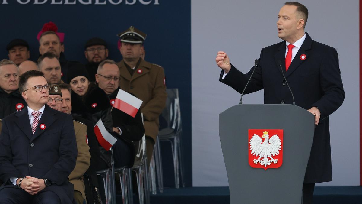 Polish President Karol Nawrocki delivers a speech during Independence Day celebrations in Warsaw, Poland, 11 November 2025. Photo: EPA / Rafal Guz