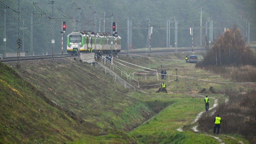 Special forces and police investigate at the scene of a destroyed section of railway tracks near the Mika railway station, central Poland, 17 November 2025. Photo: EPA/PRZEMYSLAW PIATKOWSKI