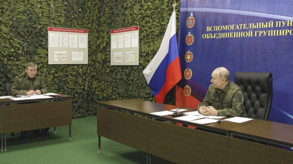 Valery Gerasimov (L) and Vladimir Putin meet at an undisclosed at a Russian military command post at an undisclosed location. Photo: EPA/RUSSIAN PRESIDENTIAL PRESS SERVICE