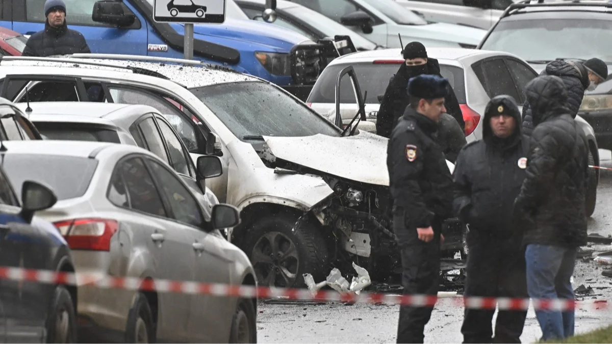 Вид на взорвавшийся автомобиль, Москва, 22 декабря 2025 года. Фото: Sefa Karacan / Anadolu / ABACAPRESS / ddp images / Vida Press