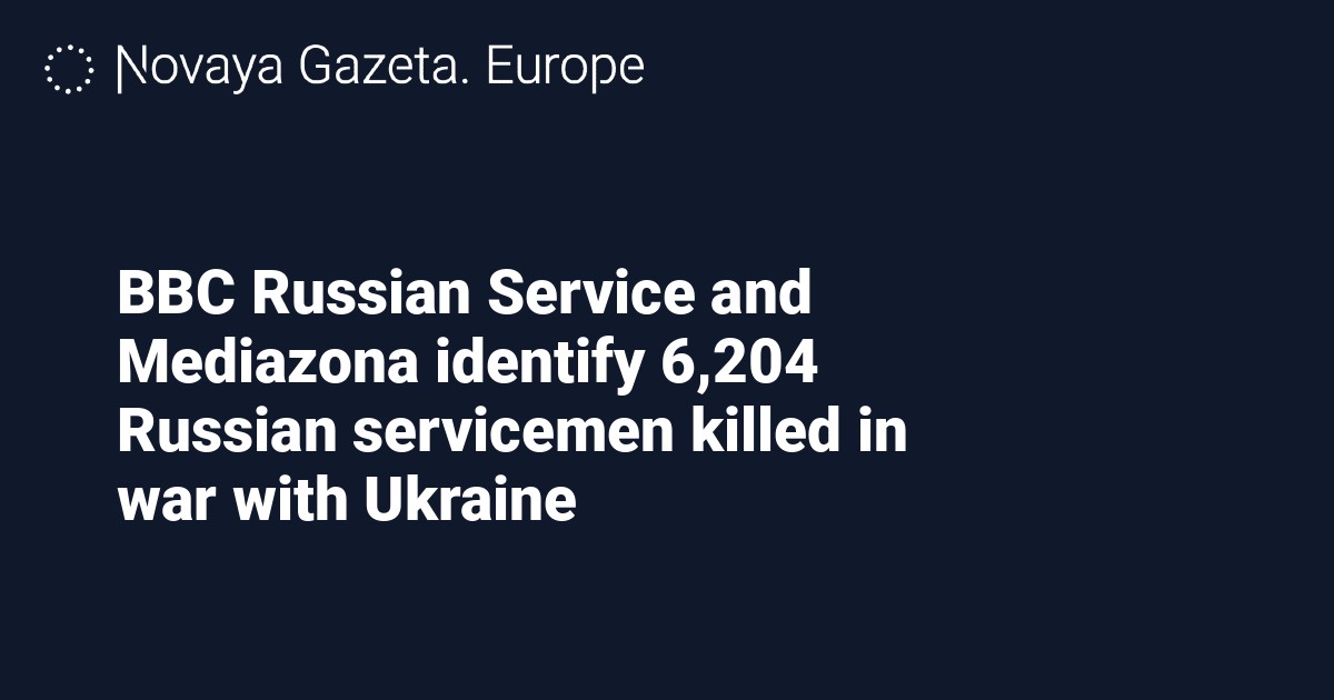 Media outlets BBC Russian Service and Mediazona, together with open source data volunteers, have identified 6,204 Russian soldiers that had been killed in the war with Ukraine, reports BBC.