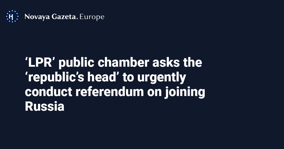 The public chamber of the self-proclaimed Luhansk “people’s republic” (“LPR”) has asked the head of the “republic” Leonid Pasechnik to urgently conduct a referendum on joining the Russian Federation, reports Russia’s state news agency RIA Novosti.