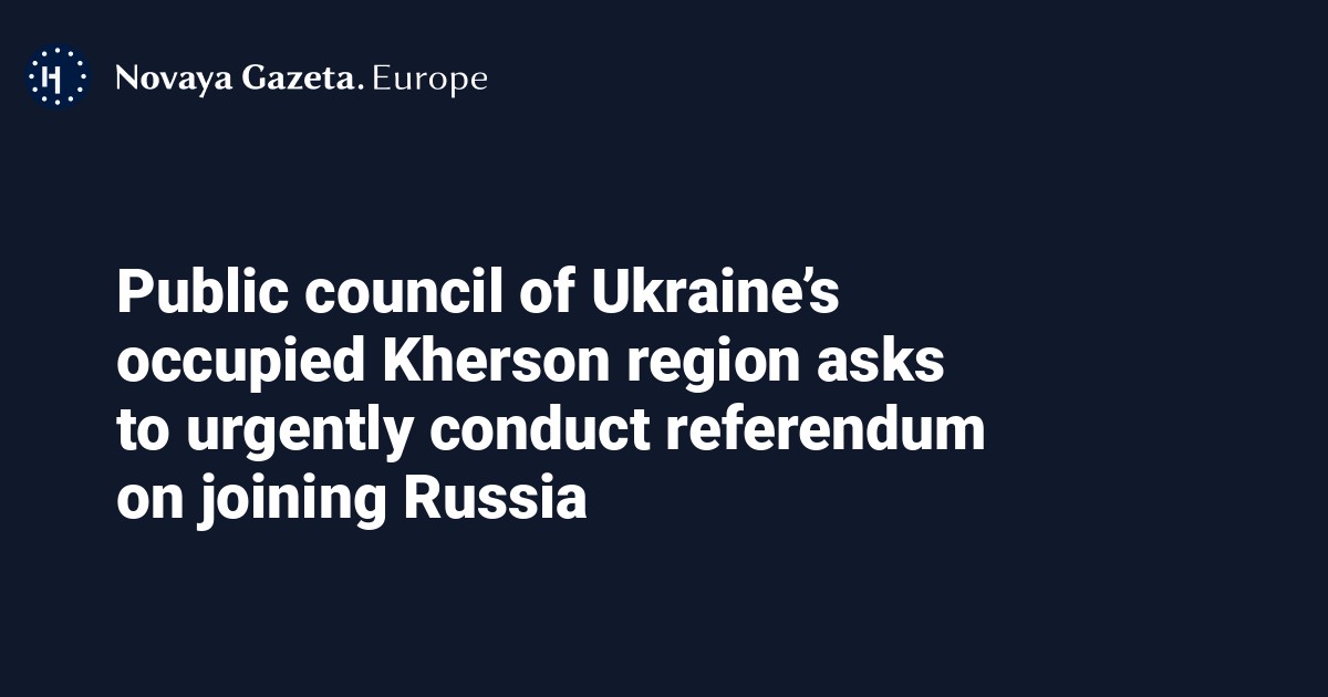 The public council of the occupied Kherson region of Ukraine has asked the so-called “head of the military civil administration” Volodymyr Saldo to urgently hold a referendum on the region entering the Russian Federation, reports Russia’s state news agency TASS.