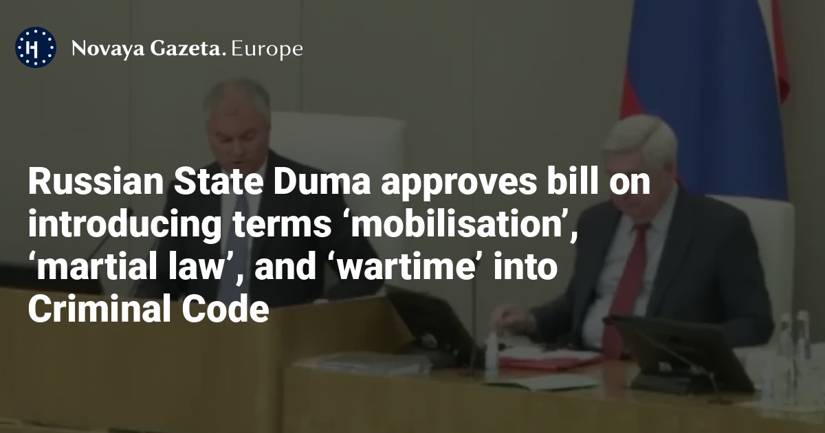 Russian State Duma approves bill on introducing terms ‘mobilisation’, ‘martial law’, and ‘wartime’ into Criminal Code