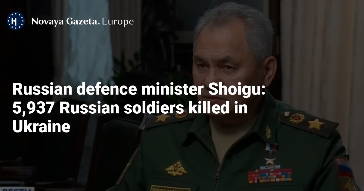 Russian Defence Minister Sergei Shoigu has announced in an interview with Russian state TV that 5,937 Russian soldiers were killed during the war in Ukraine.
