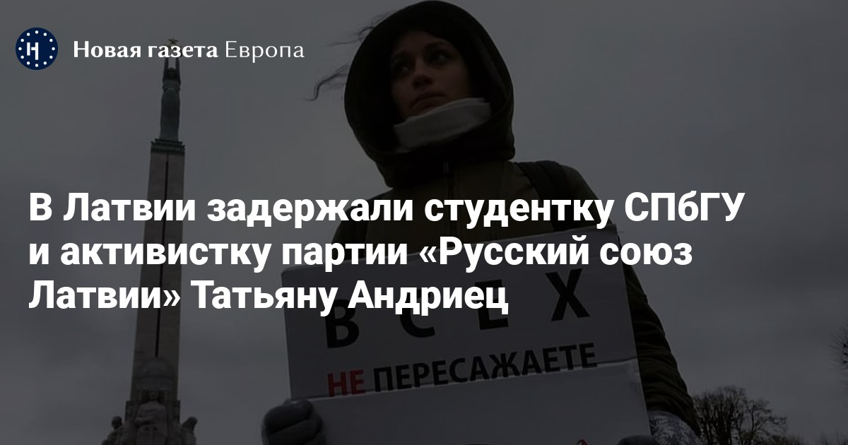 Служба госбезопасности Латвии сообщила о задержании 22-летней студентки СПбГУ и активистки партии «Русский союз Латвии» (РСЛ) Татьяны Андриец. Об этом пишет Delfi.