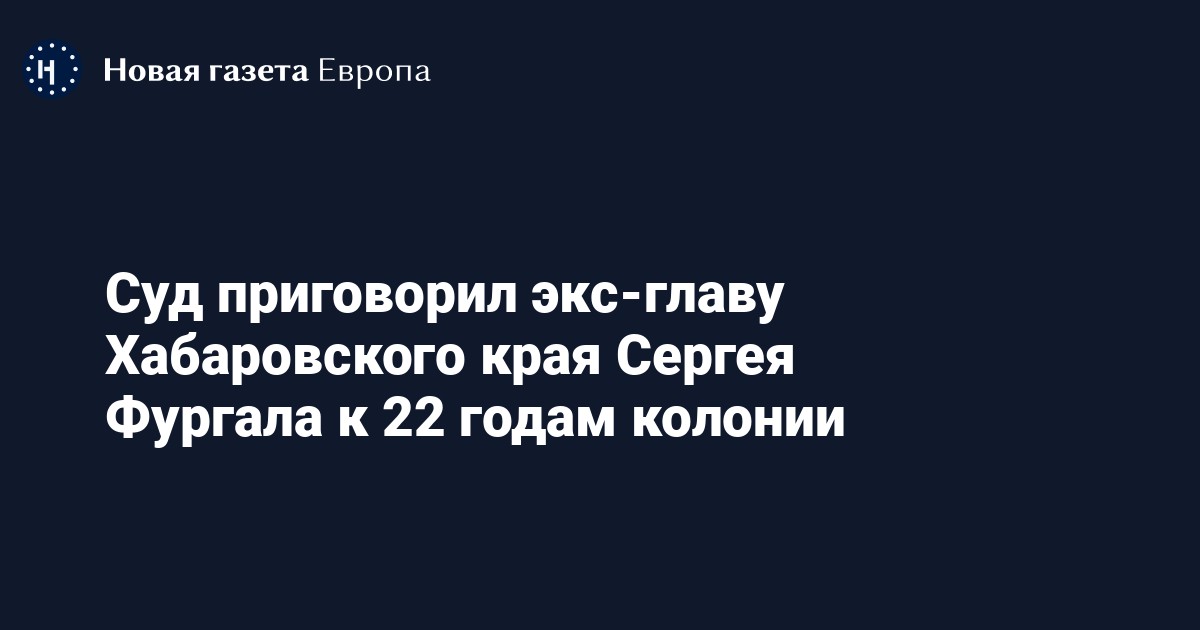 Люберецкий городской суд Подмосковья (выездное заседание проходило в Мособлсуде) приговорил экс-главу Хабаровского края Сергея Фургала к 22 годам колонии строгого режима по делу об организации убийств конкурентов в 2004-2005 годах. Об этом сообщает корреспондент «Новой газеты Европа» из зала суда.