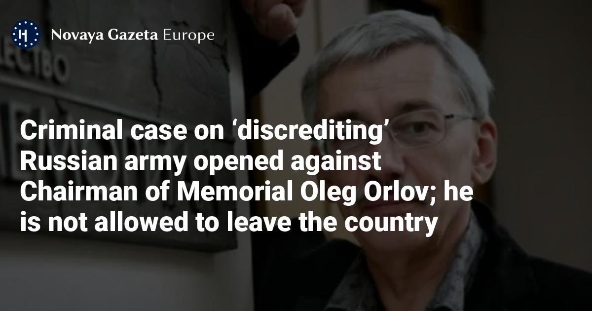 A criminal case on “discreditation” of Russia’s Armed Forces has been initiated against Chairman of Human Rights Centre Memorial Oleg Orlov, Telegram channel Society Memorial reports.