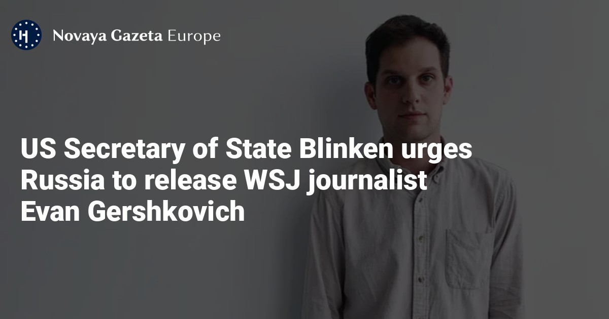 US Secretary of State Antony Blinken in a phone conversation with Russian counterpart Sergey Lavrov has called to immediately free WSJ reporter Evan Gershkovich, the State Department said in a statement.