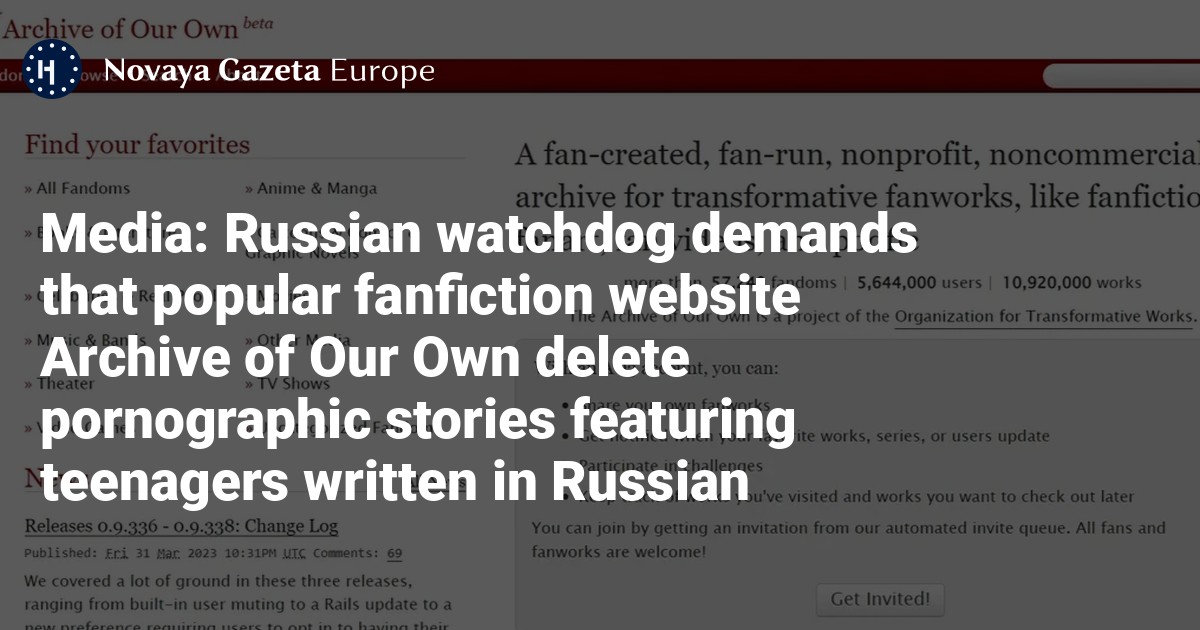 Media: Russian watchdog demands that popular fanfiction website Archive of Our Own delete pornographic stories featuring teenagers written in Russian