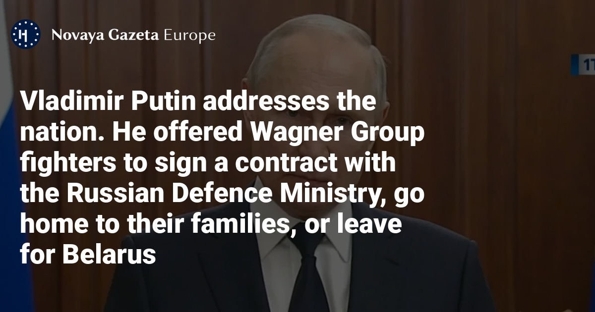 Putin thanked the mercenaries who “made the only right decision” and “stopped before reaching the point of no return”. He offered them several options: to sign a contract with the Russian Defence Ministry, to go home to their families, or to leave for Belarus.