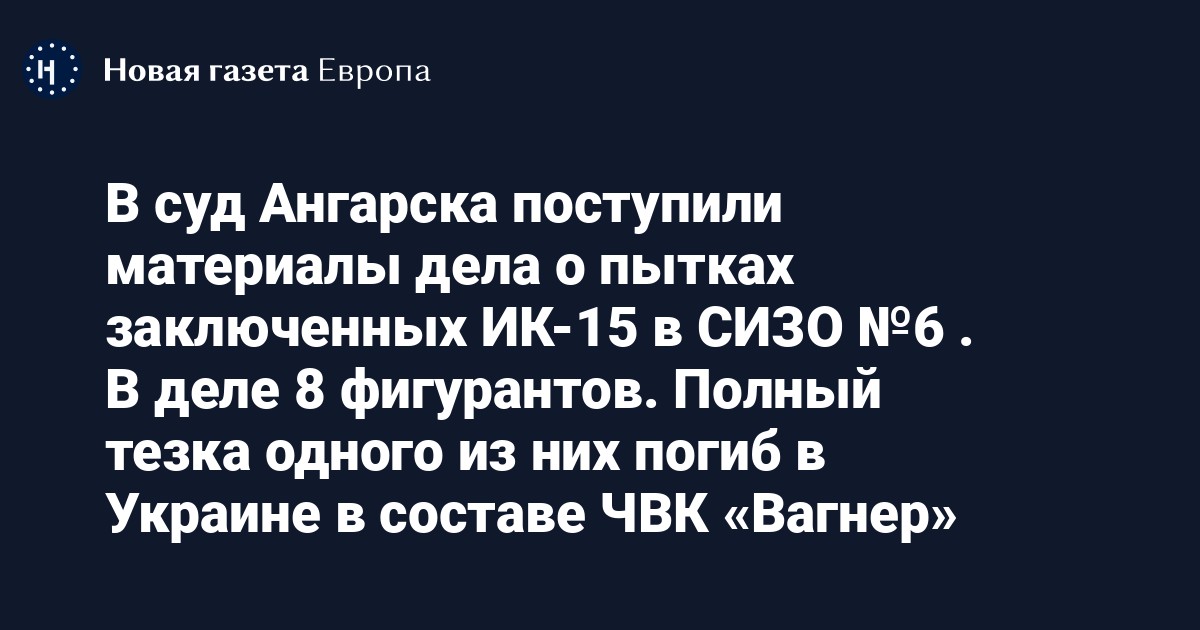 В Ангарский городской суд поступили материалы уголовного дела о пытках заключенных колонии №15 в СИЗО №6. Об этом сообщает «Сибирь.Реалии» со ссылкой на юриста «Команды против пыток» Петра Хромова.
