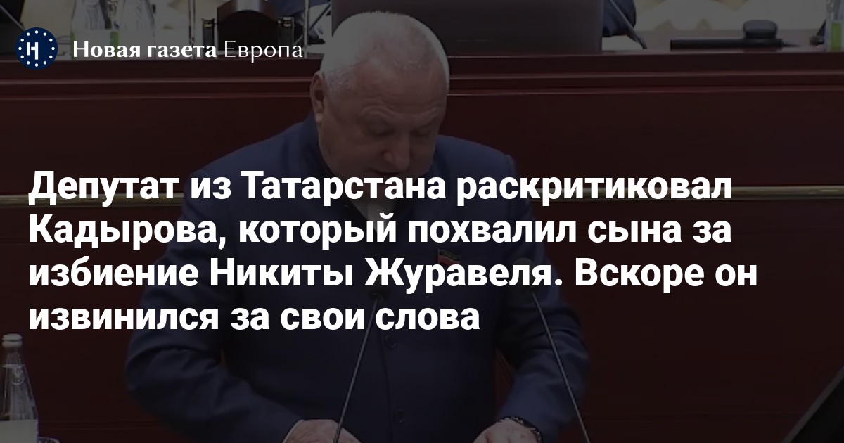 Депутат из Татарстана раскритиковал Кадырова, который похвалил сына за избиение Никиты Журавеля. Вскоре он извинился за свои слова