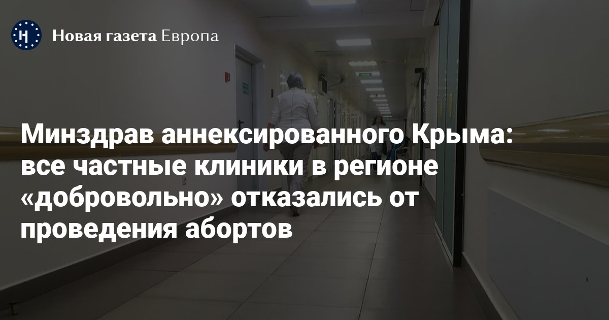 Все частные больницы в аннексированному Крыму «добровольно» отказались от проведения абортов после «предложения» «властей» региона. Об этом сообщает «Интерфакс» со ссылкой на заявление главы Минздрава в регионе Константина Скорупского.