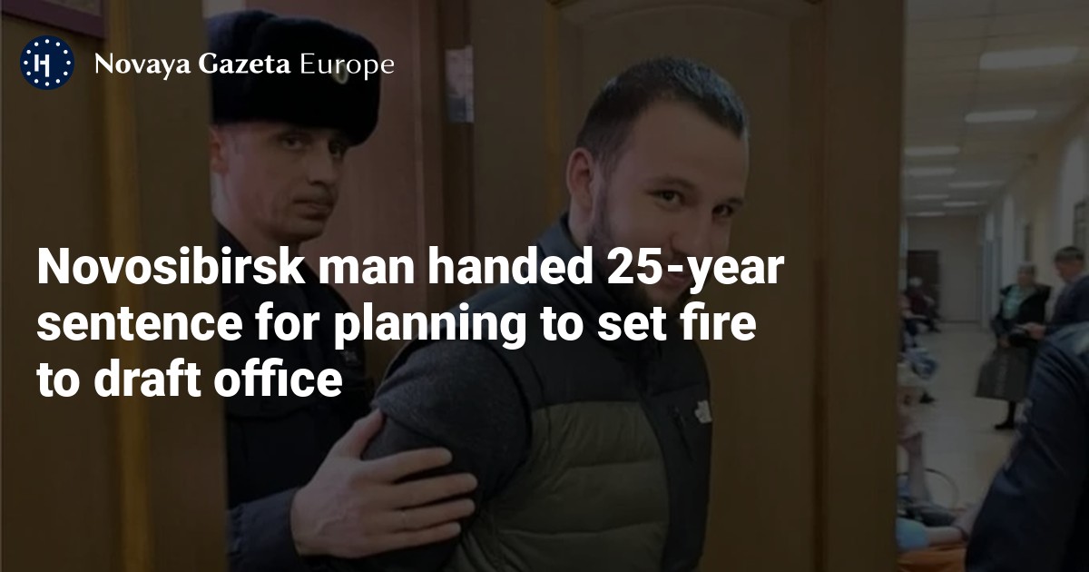 A man in the western Siberian city of Novosibirsk was sentenced to a record 25 years behind bars on Monday for planning to set fire to a military recruitment office in September 2022, Russian independent news outlet Sotavision reported.