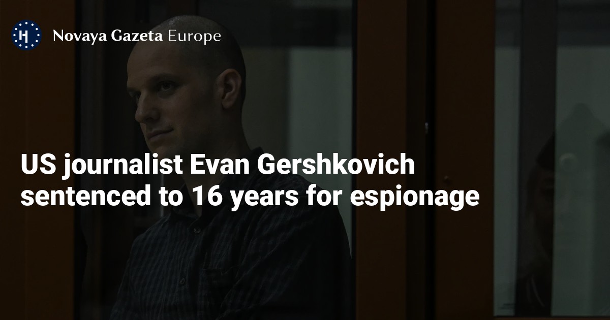 A court in the Russian city of Yekaterinburg has found Wall Street Journal correspondent Evan Gershkovich guilty of espionage and sentenced him to 16 years in prison on Friday after a trial behind closed doors that lasted just three days, independent news outlet SOTAvision has reported.