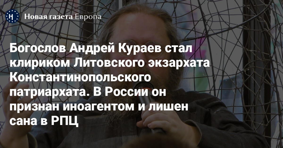 Как сообщала «Новая-Европа», 3 апреля нынешнего года Кураев был официально принят в Константинопольский патриархат с центром в Стамбуле, занимающий «первое по чести» место в мировом православии. Синод Константинопольского патриархата признал канонически необоснованным и политически мотивированным «прещение», которому подвергло Кураева руководство РПЦ. Со своей стороны, диакон счел неслучайным тот факт, что именно в этот день тремя годами ранее был подписан указ патриарха Кирилла (Гундяева) о лишении его сана. Впрочем, Кирилл сразу же наложил «мораторий» на исполнение своего указа, и окончательно Кураев был «лишен сана» в РПЦ только в апреле 2023 г. За свои публикации о российской агрессии в Украине он был оштрафован по административной статье о «дискредитации» ВС РФ, а в ноябре 2023 г. признан минюстом России «иностранным агентом». Незадолго до присвоения ему этого статуса Кураев покинул РФ и заявил о своем переезде в Прагу, где и проживает в настоящее время, выступая с лекциями в разных европейских странах. Например, в конце июля Кураев посетил Латвию, где выступит в протестантской церкви «Новое поколение», признанной в РФ «нежелательной организацией».