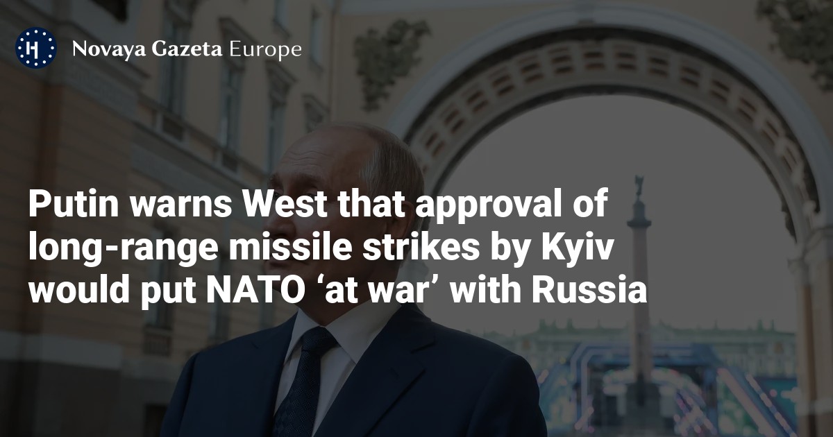 Amid reports that Kyiv’s allies were considering lifting restrictions on Ukraine’s use of Western-made missiles to strike deep inside Russia, Vladimir Putin warned on Thursday that the move would mean that NATO was “at war” with Russia.