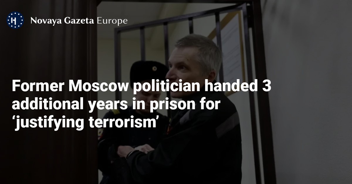 Former Moscow local councillor Alexey Gorinov has had three years added to his existing prison sentence by a military court in Russia’s central Vladimir region after it found him guilty of “justifying terrorism” in a conversation with a prison informant, independent media outlet Mediazona reported on Friday.