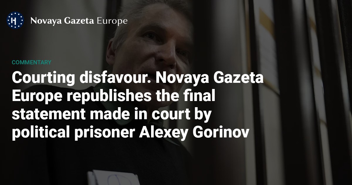 A military court last week added three more years to the existing seven-year prison sentence given to former Moscow local councillor Alexey Gorinov after finding him guilty of “justifying terrorism” for a conversation he had with a prison informant. Today we are republishing his final statement to the court before he was sentenced.