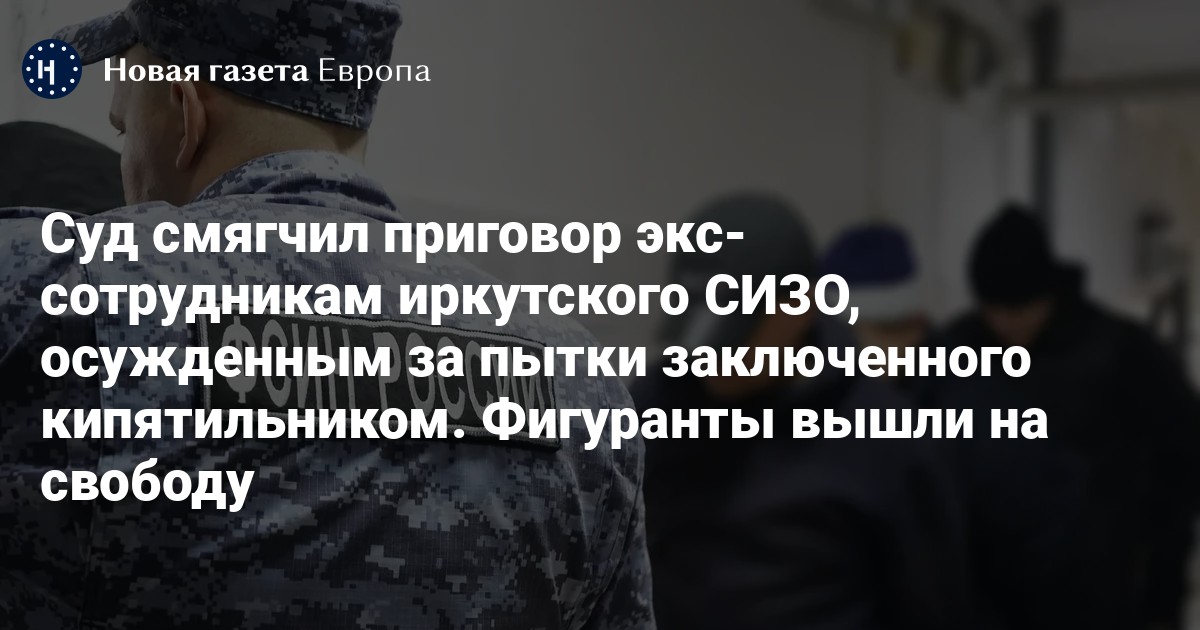 Пятый апелляционный суд смягчил приговор пятерым экс-сотрудникам СИЗО-1 в Иркутске, которые были осуждены за пытки заключенного Ондара Кежика кипятильником. Все фигуранты вышли на свободу. Об этом сообщила член СПЧ при президенте России Ева Меркачева.