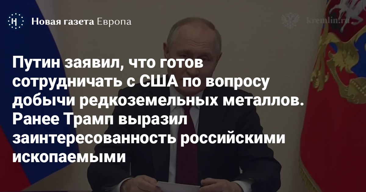 Путин заявил, что готов сотрудничать с США по вопросу добычи редкоземельных металлов. Ранее Трамп выразил заинтересованность российскими ископаемыми
