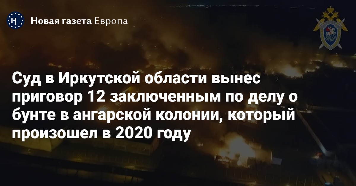 Иркутский областной суд вынес приговор 12 заключенным по делу о массовых беспорядках (ч.ч. 1, 2 ст. 212 УК) и дезорганизации работы (ч. 3 ст. 321 УК) ИК-15 в Ангарске. Об этом сообщила пресс-служба иркутского управления СК.