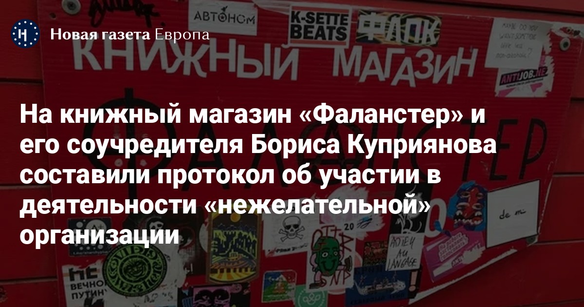 На книжный магазин «Фаланстер» и его соучредителя Бориса Куприянова составили протокол об участии в деятельности «нежелательной» организации