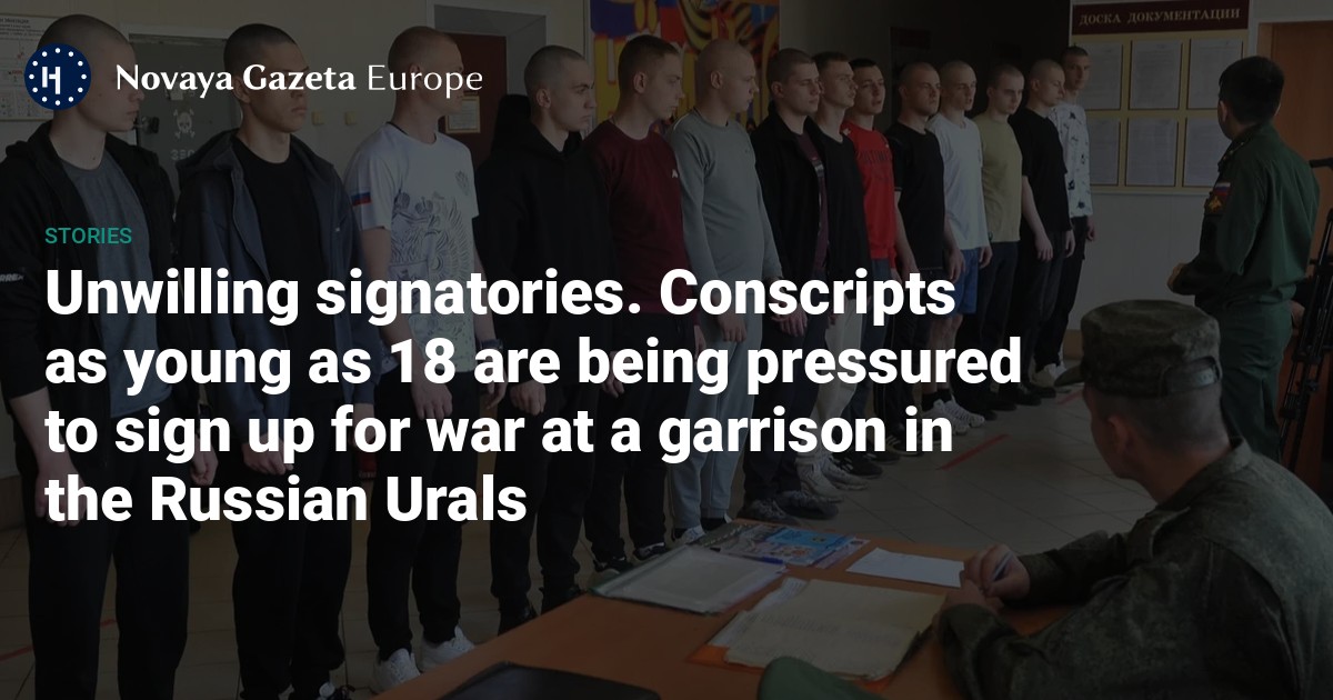 In November, it came to light that another group of recruits from the republic of Chuvashia, in the Volga region, faced a similar situation in which they were intimidated into signing papers on arrival at their military unit under the same absurd pretext — to avoid being sent to the front.