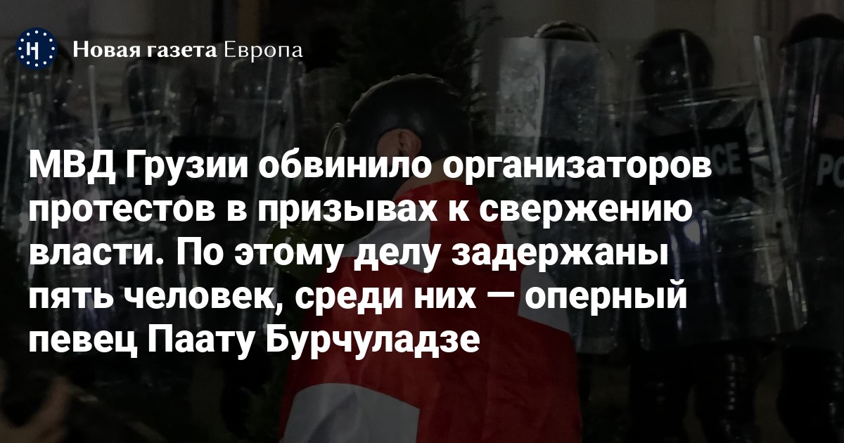 МВД Грузии обвинило организаторов протестов в призывах к свержению власти. По этому делу задержаны пять человек, среди них — оперный певец Паату Бурчуладзе