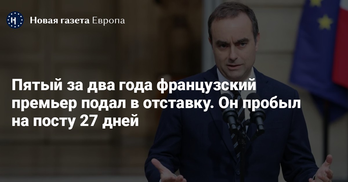 Лекорню проработал на посту премьер-министра 27 дней — это самый короткий срок в истории Франции. Он был назначен на должность 9 сентября этого года, став пятым премьером страны за последние два года.