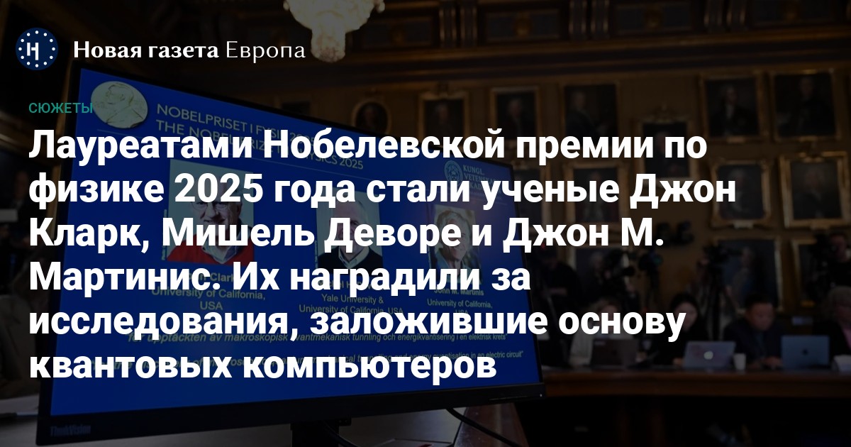 Лауреатами Нобелевской премии по физике 2025 года стали ученые Джон Кларк, Мишель Деворе и Джон М. Мартинис. Их наградили за исследования, заложившие основу квантовых компьютеров