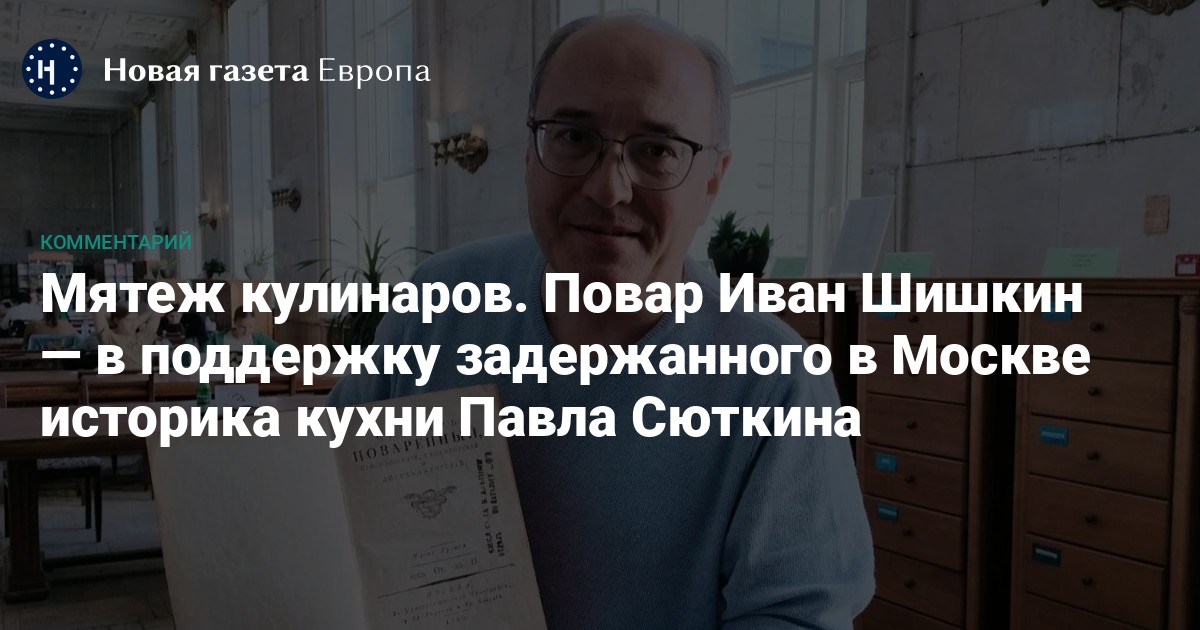 В Москве в рамках очередного уголовного дела о «фейках об армии» задержан Павел Сюткин, историк кулинарии, блогер и автор ряда книг о русской и советской кухне. Он известен тем, что позволяет себе говорить о еде, напитках, грибах и капусте, о посте и Новом Годе, о русской и нерусской кухне, позволяет себе копаться в прошлом и критиковать настоящее вместо того, чтобы следовать «официальной линии».