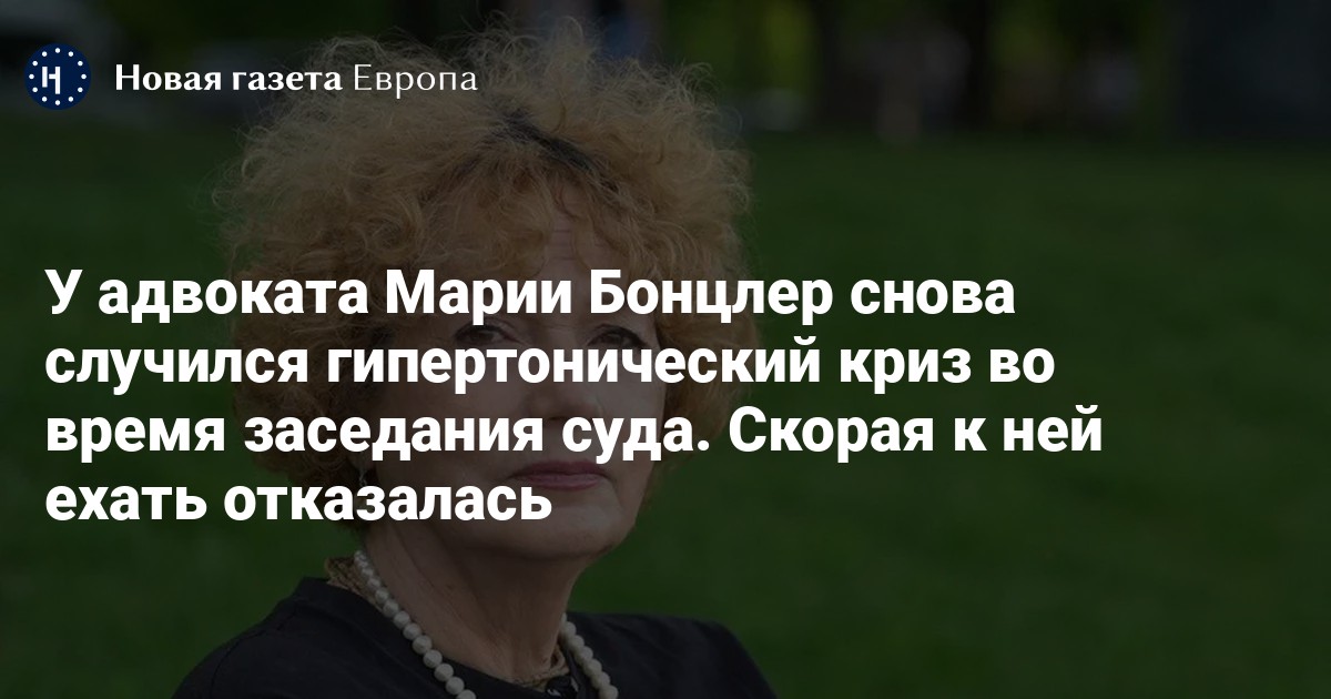 У адвоката Марии Бонцлер снова случился гипертонический криз во время заседания суда