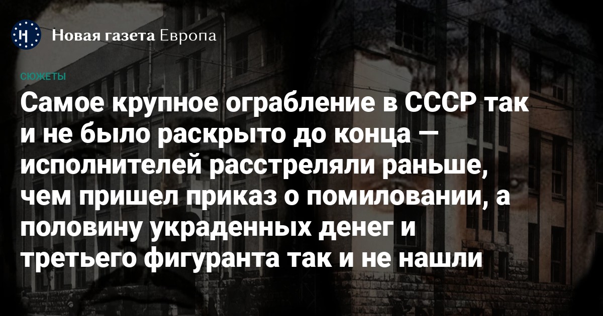 Самое крупное ограбление в СССР так и не было раскрыто до конца — исполнителей расстреляли раньше, чем пришел приказ о помиловании, а половину украденных денег и третьего фигуранта так и не нашли