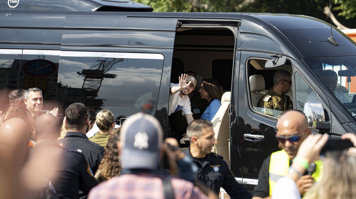 Освобождённый израильский заложник Ром Брасловски, Израиль, 13 октября 2025 года. Фото: Atef Safadi / EPA