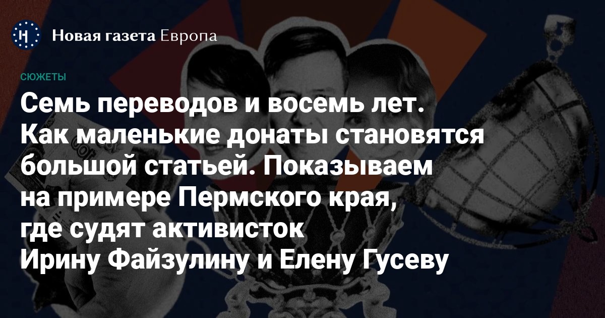 Как маленькие донаты становятся большой статьей. Показываем на примере Пермского края, где судят активисток Ирину Файзулину и Елену Гусеву