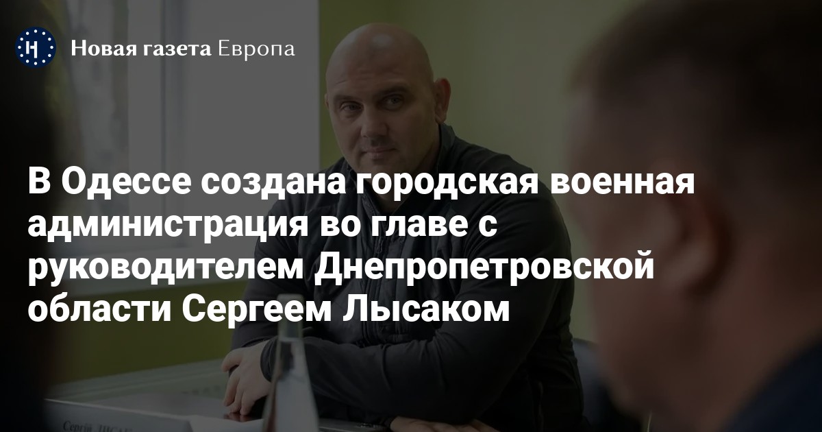 Президент Украины Владимир Зеленский подписал распоряжение о создании в Одессе городской военной администрации. Ее главой назначен руководитель Днепропетровской области Сергей Лысак.