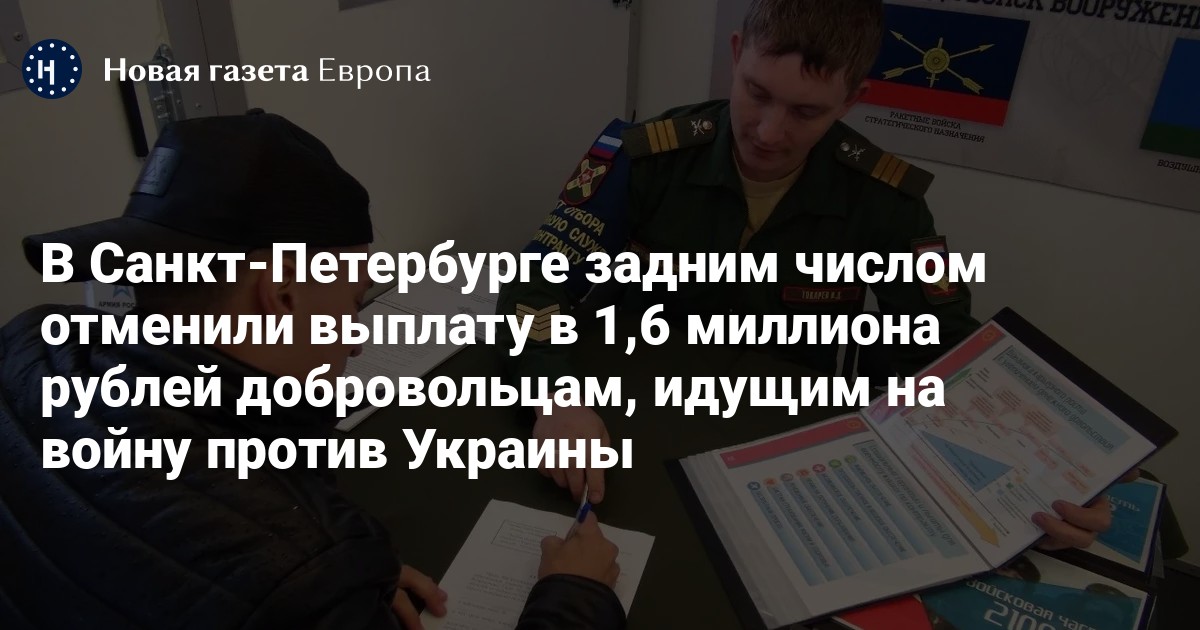 Власти Санкт-Петербурга отменили губернаторскую единовременную выплату в 1,6 миллиона рублей для добровольцев, идущих на войну против Украины. Об этом сообщает «Фонтанка» со ссылкой на источники.