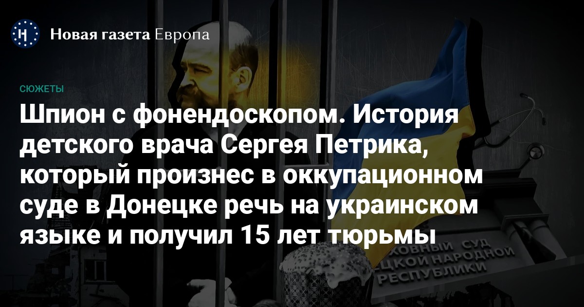 В Донецке в первых числах октября состоялся суд над детским врачом Сергеем Петриком. Это доктор из Макеевки, который с 2014 года жил, работал и был арестован на «новых оккупированных территориях», в украинском поселке Никольское под Мариуполем. Ему дали срок по статьям УК РФ, которые предполагают «измену родине и шпионаж», по ним сейчас судят и украинцев. «Новая-Европа» смогла получить обвинительное заключение Сергея Николаевича и рассказывает типичную историю особенного, неординарного человека, дважды попавшего в оккупацию.