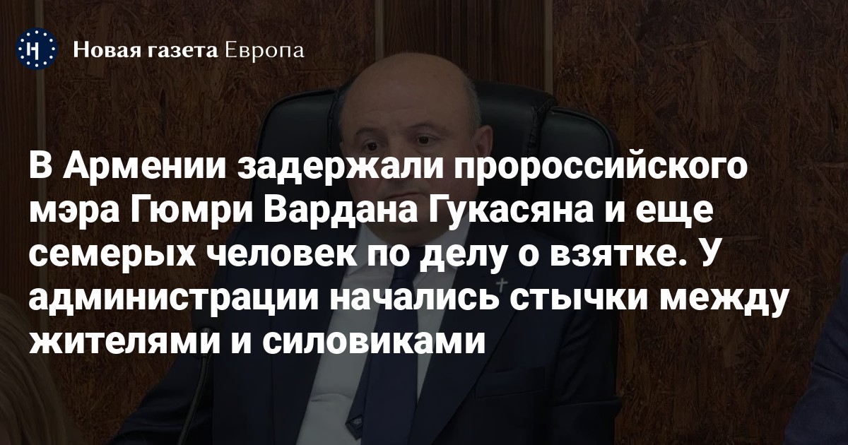 В Армении по подозрению в получении и даче взятки задержали мэра Гюмри Вардана Гукасяна, главного архитектора города Генрика Гаспаряна и еще шестерых человек. Об этом сообщили в Антикоррпуционном комитете республики.