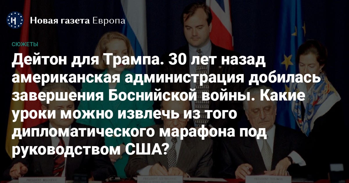 О том, почему принципы, на которых базируются Дейтонские соглашения, не слишком подходят для урегулирования российско-украинского конфликта, но сама тактика тонкого дипломатического «принуждения к миру» актуальна и сейчас, — в материале «Новой газеты Европа».